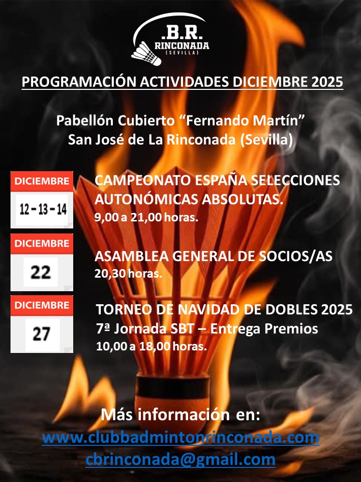 - 23 Diciembre de 2023. Un año más, nos complace anunciar que, durante el próximo sábado día 23 de diciembre vamos a organizar nuestro tradicional Torneo de Navidad de Dobles, seguido de la entrega de trofeos, premios y almuerzo de navidad. Rogamos comuniquéis vuestra intención de participar lo antes posible para ir realizando la previsión de la organización del Evento.